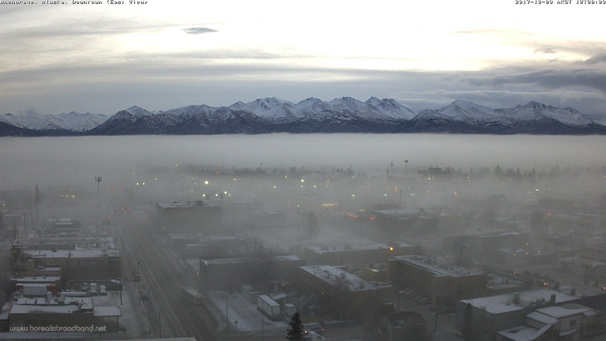 | Dec-11-17 | | Alien Math: thanks <Domdaniel> and <MostlyAverageJoe> for the book recommends :) weather here in Anchorage was warmer than usual, with rain that started to freeze after encountering the cooler ground, to fog banks that had limited visibility to between half km and half mile, with house across the street being partially covered, here is one day when the fog was starting to lift and i thought the effect looked interesting https://pbs.twimg.com/media/DQoG0Z4... |